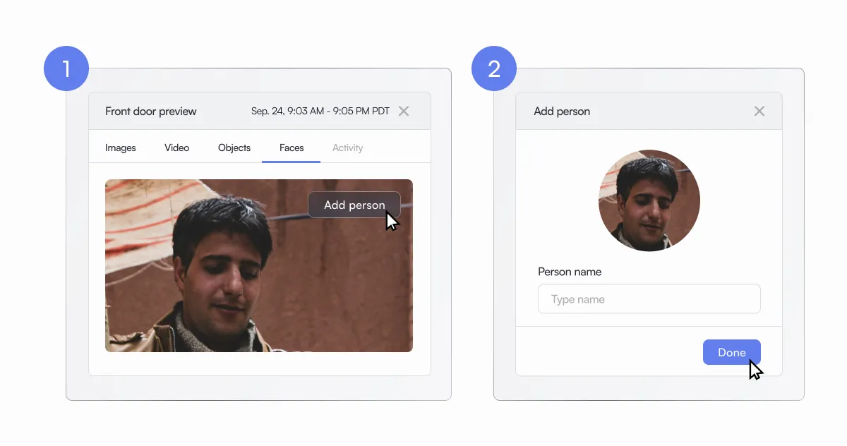 When Smart Search detects a face, users can add it to the organization database with a single click. Once a face is added, it can be used to create AI alerts that ensure your team is proactively addressing untrusted individuals on-premises.